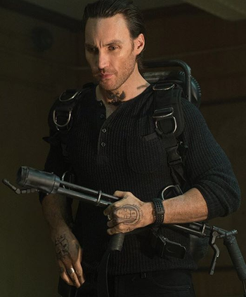 , a state-supported paramilitary group that first came to prominence in 2015 for their involvement in Ukraine and Syria, and later extended their operations to Libya and various Sub-Saharan African countries. He also has Mafiya tattoos to reflect his likely origin as a soldier-turned-gangster-turned-mercenary in reference to Russia's turbulent history in the 1990s. The tattoos themselves imply he's a far-right Orthodox Russian ultranationalist instead of a far-left political extremist, which is also more fitting for the film's late 2010s setting. - Tattooed Crook: Probably best seen here