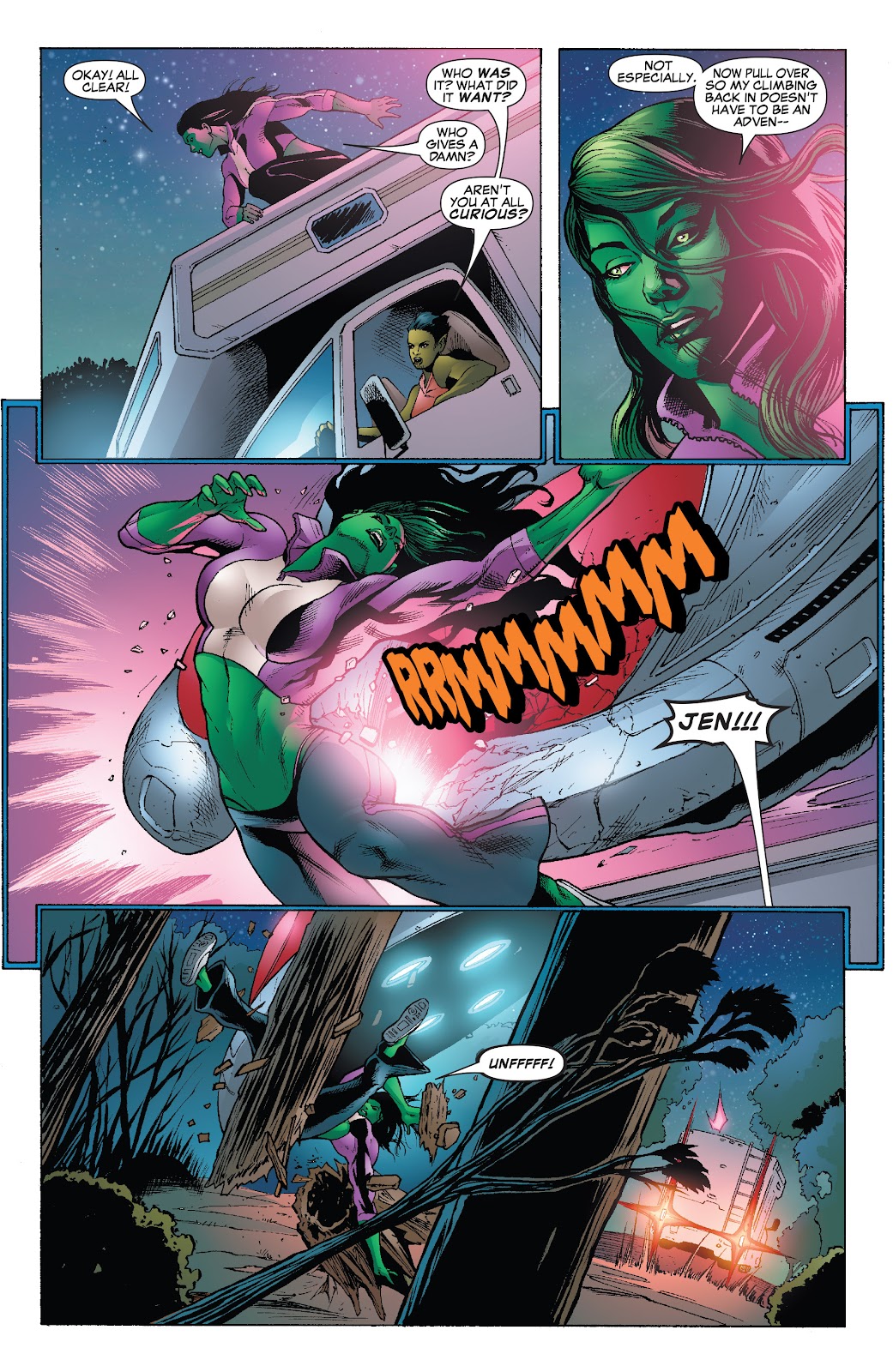 - During Jason Aaron's "Hulk" run, Jen gets a new form that looks more like her cousin, picks up his bad temper and some of his angstiness, and likewise reverts to his iconic speech patterns.