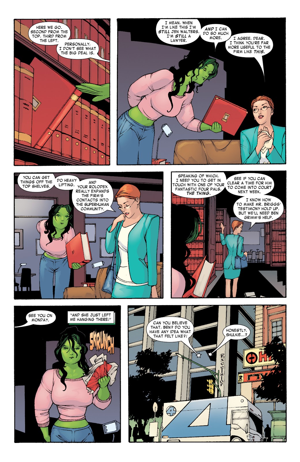 ◊ Also, in modern times, when Jen changes into She-Hulk without her leotard, she often