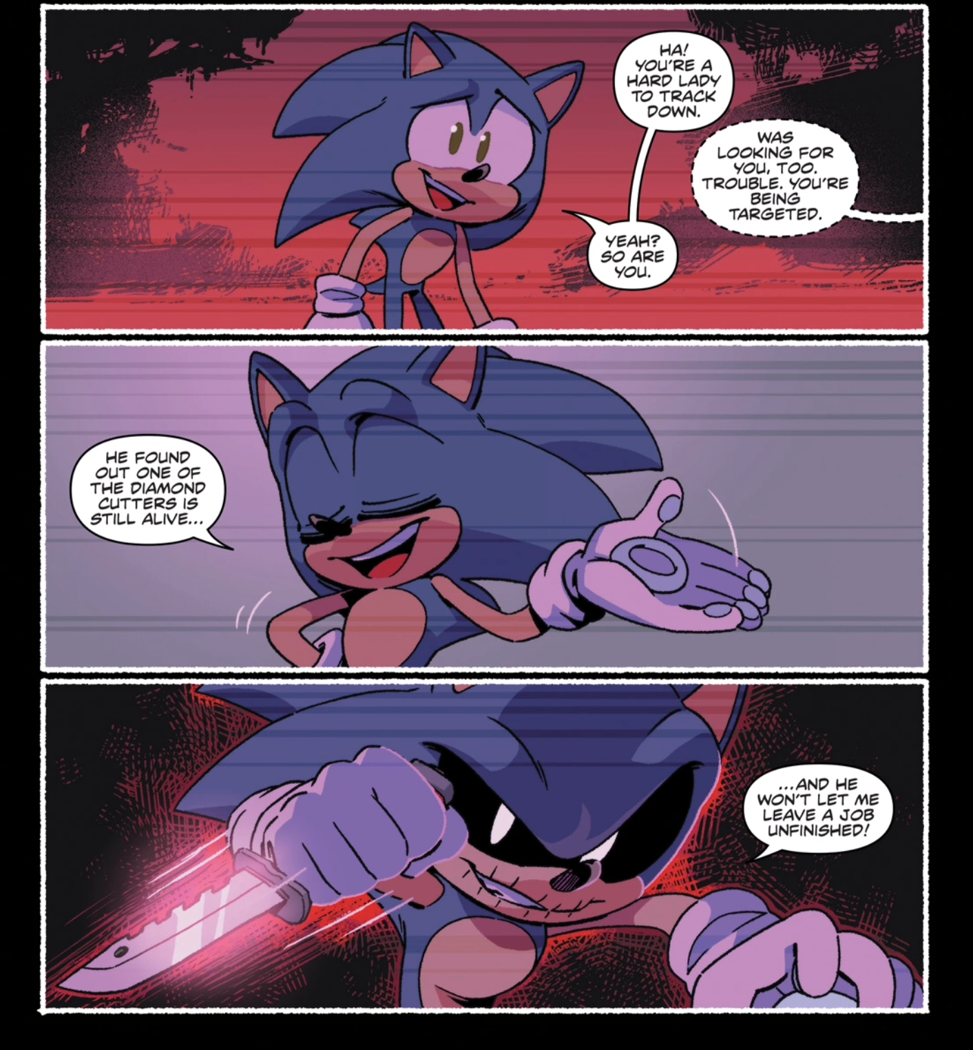 ◊ - Sonic the Hedgehog (IDW): Mimic in Sonic's form threatening Whisper with his knife