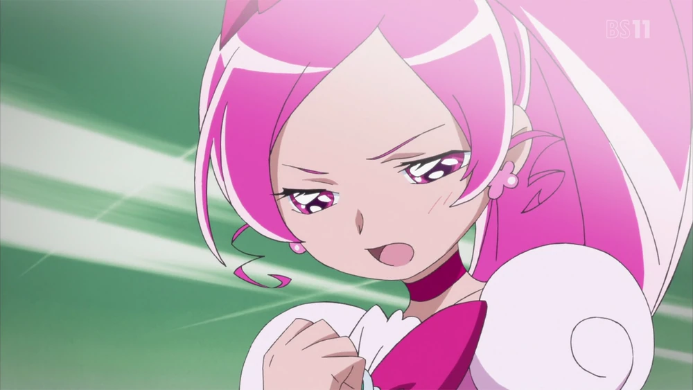 . - HeartCatch Pretty Cure!: Cure Blossom against a green background