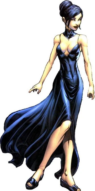 . She wore a simple but beautiful Little Black Dress in her debut issue. She wore a similar dress in later issues, except with less coverage. She demonstrates her deadly skills in her debut issue where she overpowers Spider-Man with her Super Strength and Sonic Scream, knocks out Captain America with a kick and ends the issue forcing a big wet kiss on the defeated Spider-Man.