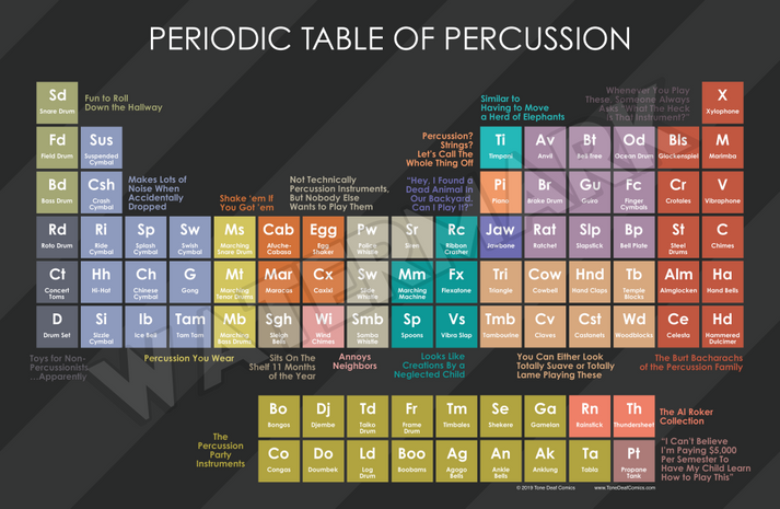 - One of the posters sold by Tone Deaf Comics is a Periodic Table Of Percussion