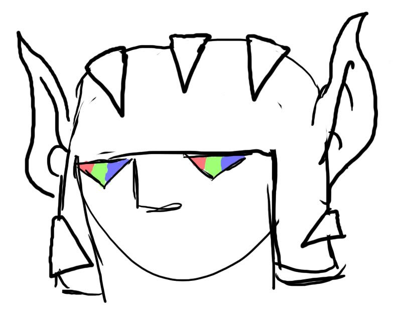 The two other machines were similar to each other in the very base design. The core of each unit was identical – a plain, simplistic yet sleek and mobile frame reflecting the basic anatomical ratio of an adult, with a largely segmented and modular structure. The head of these machines were interchangeable, being a vaguely humanoid face in an open helmet with what looked like colored stained glass panels for eyes, two decorative, elongated ears that extends diagonally backward, and a number of angular segments sculpted into the helms themselves.