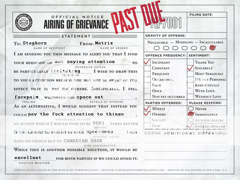 Anyone who assigns themselves loads of character tropes is someone to be worried about.Okay, Staghorn, we have complained about this many times, but today I have deigned to make it official
