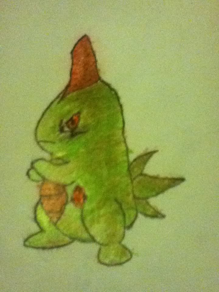The Feraligatr reaches up and picks the Larvitar up of his head, then holds him out inf front of him. He couldn't help but notice that he looked somewhat different from other Larvitar he had seen.