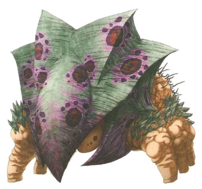 -it looks somewhat like Godzilla, except... well, imagine a really derpy costume version of the kaiju instead. Sort of like this-