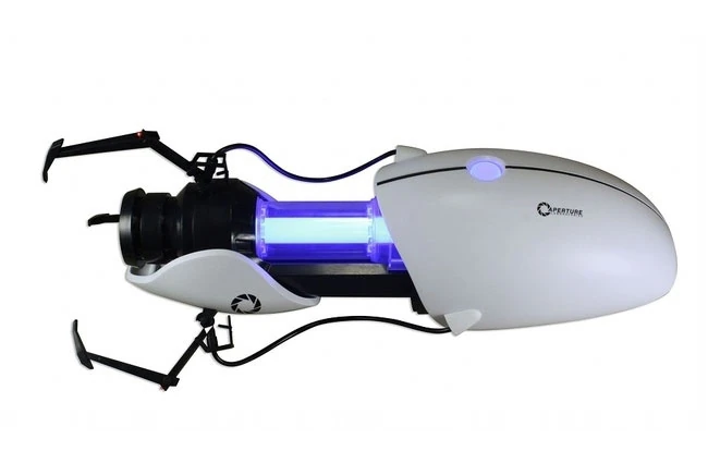 -Sandra goes to pick up the portal gun, figuring out the dual triggers-