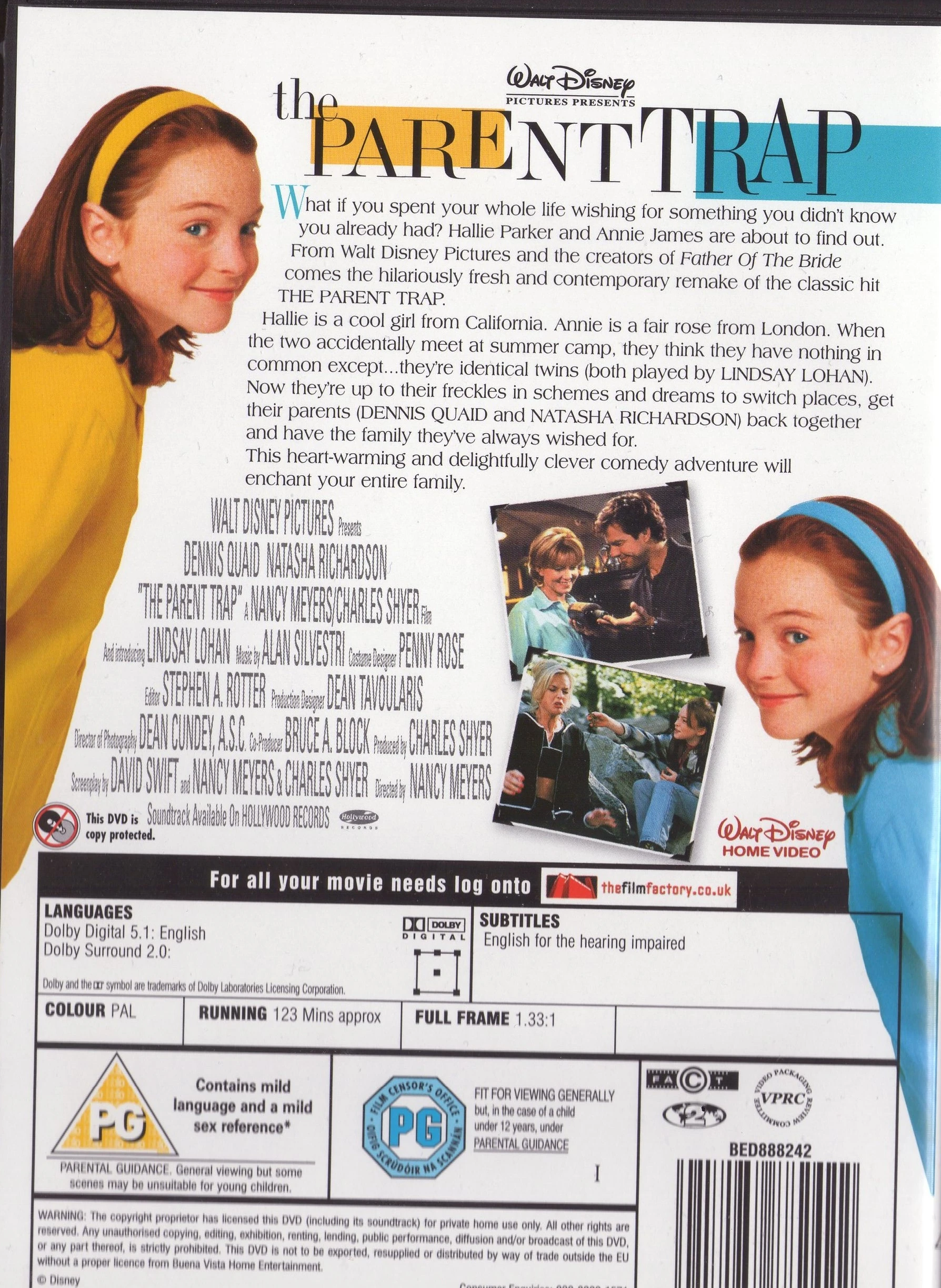 (Has a DVD of the remake of The Parent Trap resting on her head like a hat.)