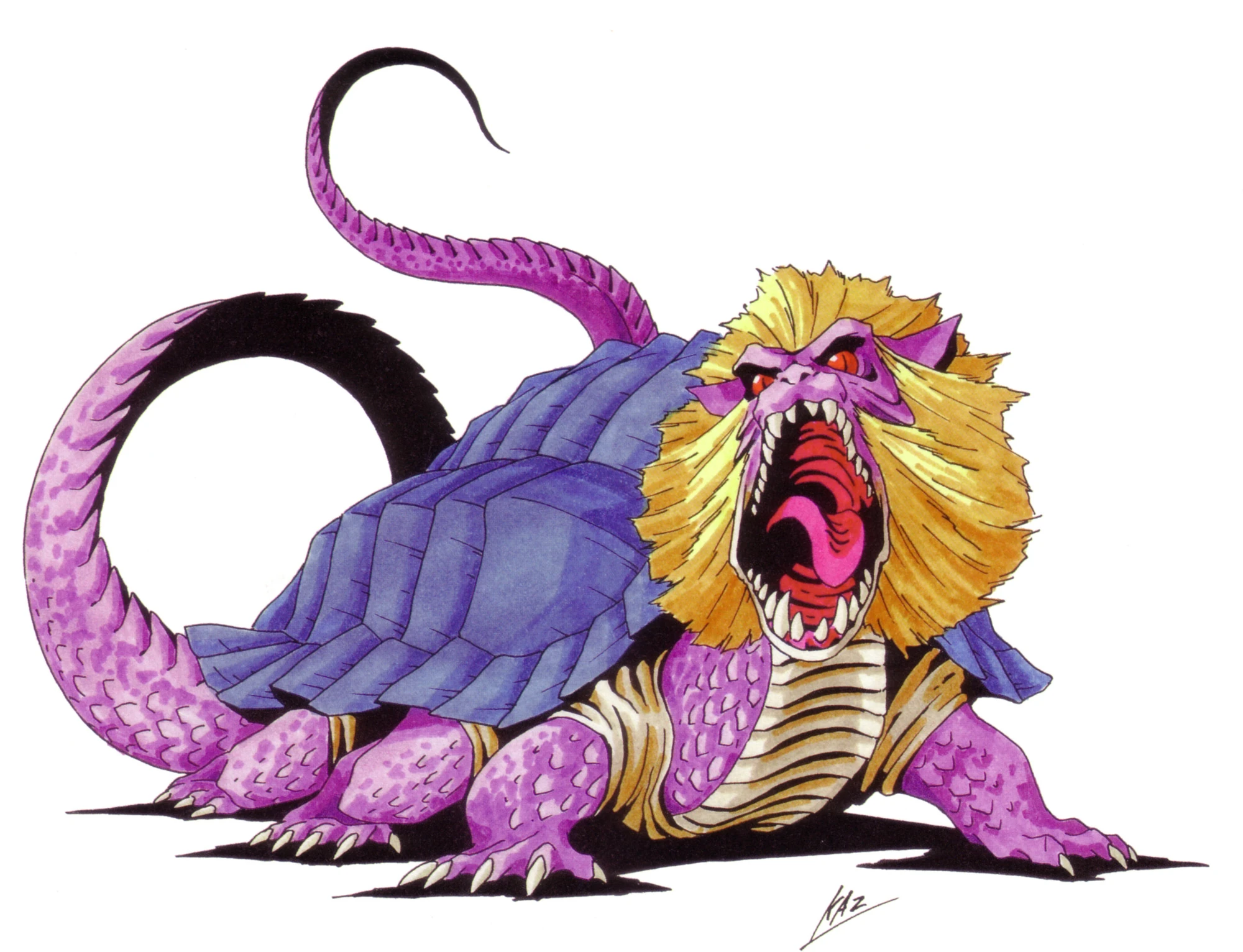 and now it's fuckin' hustling towards you and something BIG, SCALY, AND PURPLE leaps out at the two