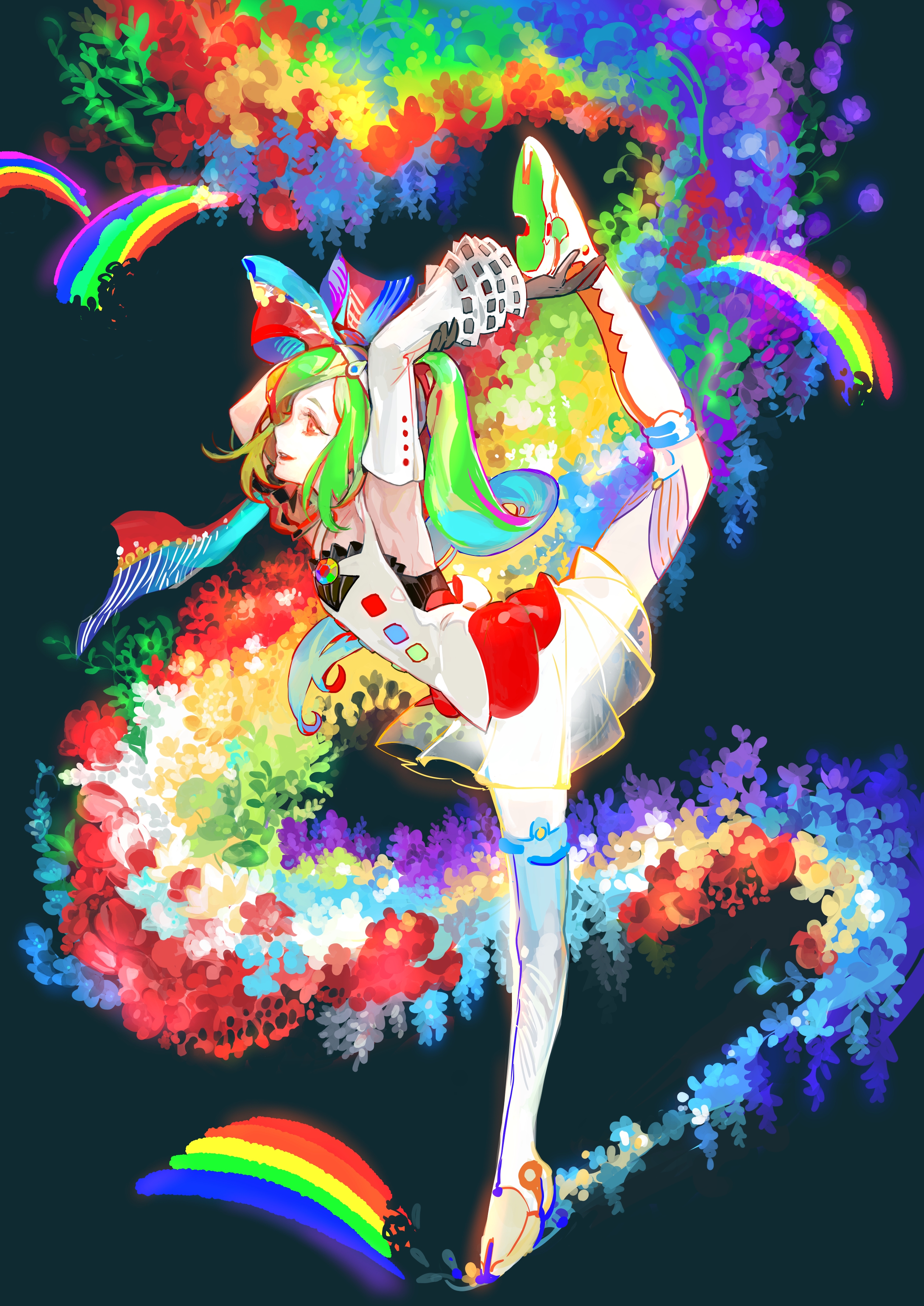 -she flies around the room, leaving a trail of rainbow colors that lingers in the air-