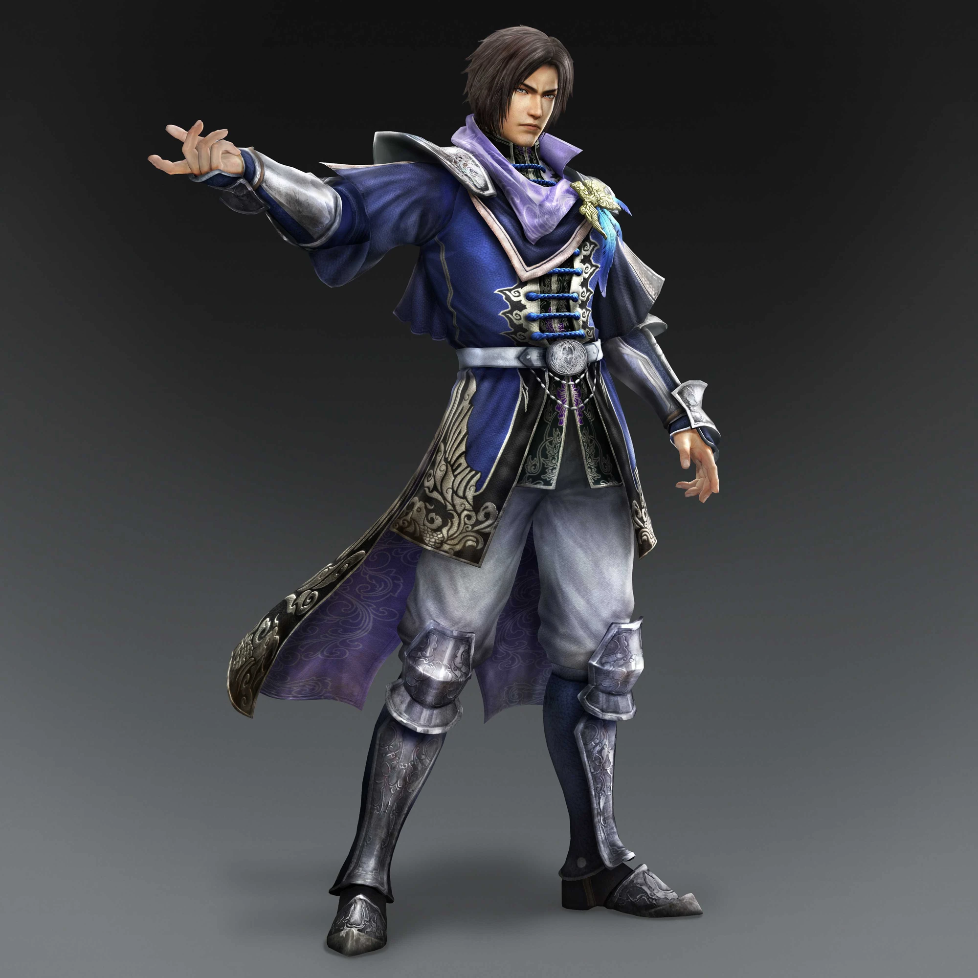 -wearing blue, and wielding a pair of swords-