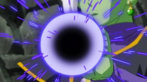-Zamasu jumps back from Marcia's claws, forming a blue-and-black ball of energy