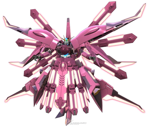 -He charges forward, ahead of 'Sthesia'. He starts off by throwing beam daggers towards the Extreme Gundam, preparing to grab the beam sabers after.-