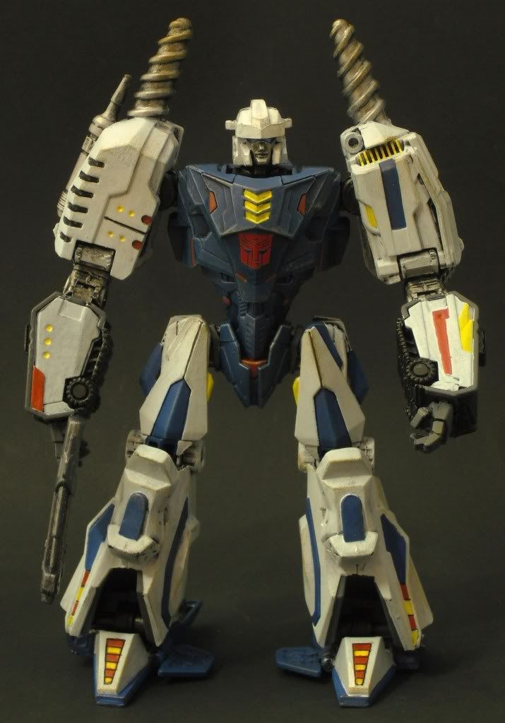 Grounder has transformed from some drill-tank into a bipedal robot with drills for shoulders