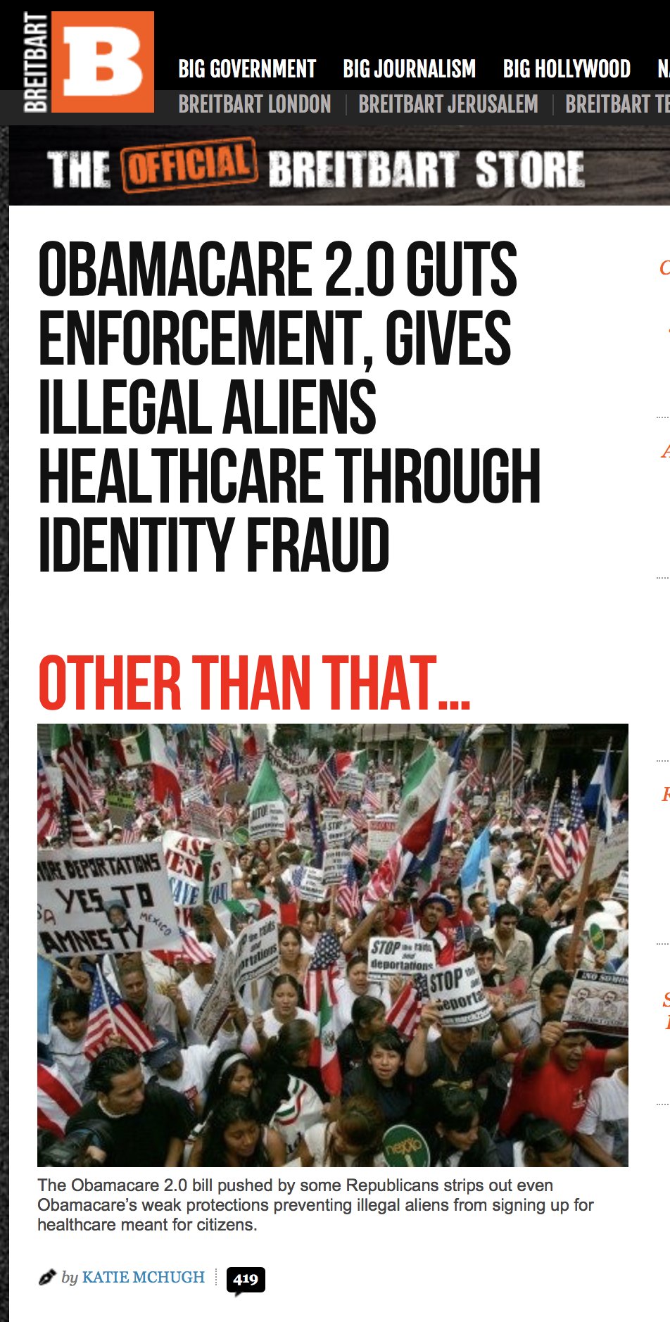 Here's an image of a Breitbart article attacking the bill.