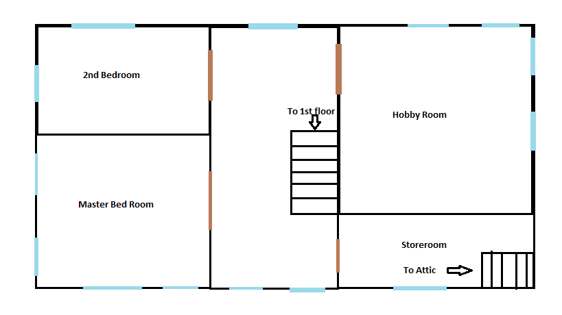 I actually made a few mistakes on the maps, since I made this a few months ago. Things I forgot to include on the maps are: The Storm Shelter, and the backdoor in the kitchen's east wall. Also, there was a labeling mistake. Parlor is supposed to be the dining room.