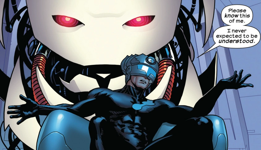 But unlike the armored adventures version Ultimate Mad Thinker was running around killing people and then adding their brain matter into her own to make herself smarter and giver herself this grotesque appearance.