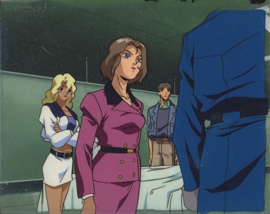 "Affirmative." with beam saber drawn, each man surrounded the red mech.