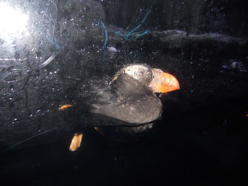 ◊ is a puffin. He did not appeciate the flash photography as he puffed up and swam off after that.