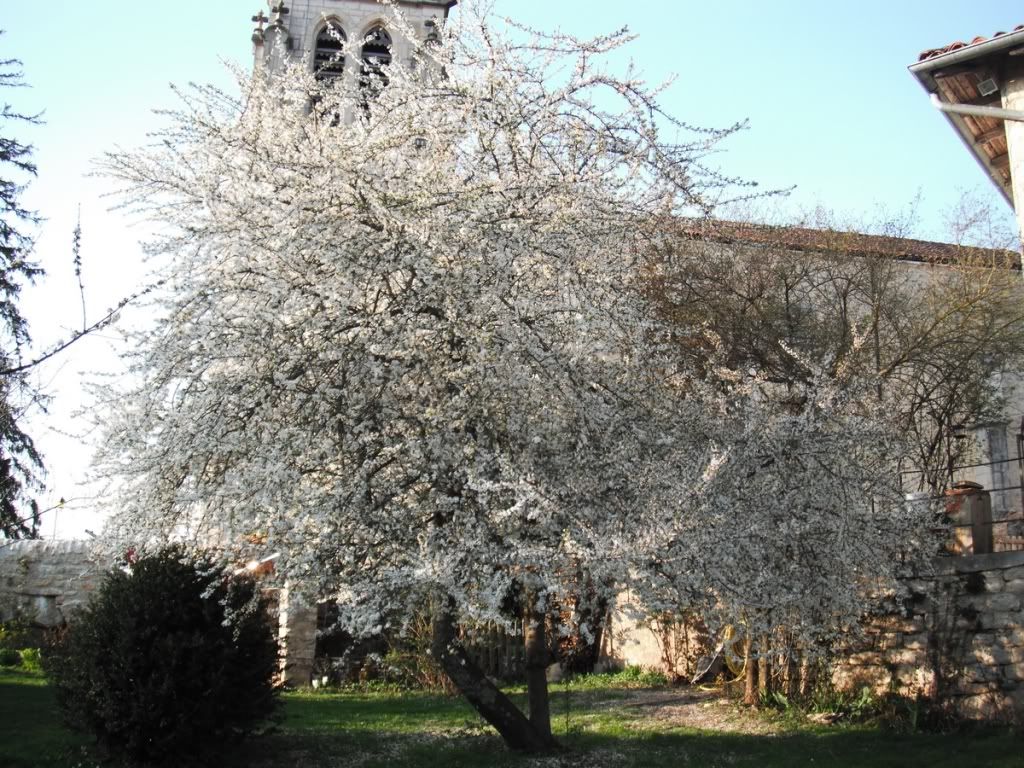 The plum blossoms have fallen off, but there's a crabapple tree