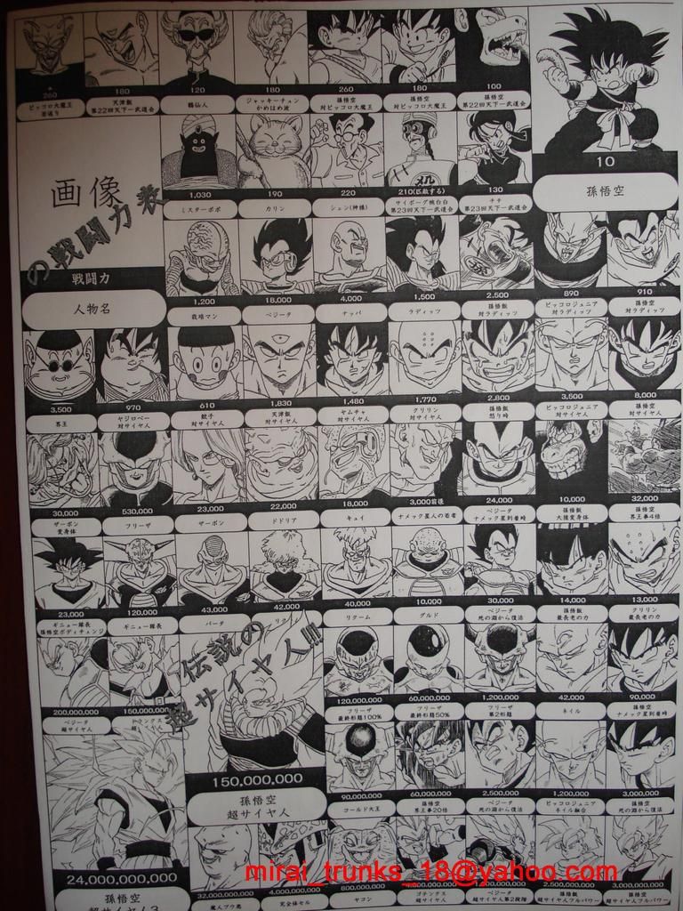Nearly all of the Saiyan - Namek figures come from official sources, although they're misapplied in some instances like giving Saiyan arc Goku 910 when the manga gives him 924 (and 910 being the number for his 23rd Budokai self).