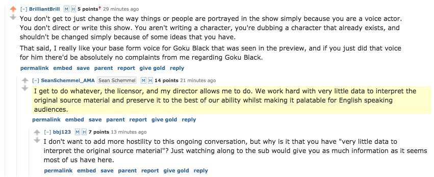 I will say, I did find some reactions on another forum kind of hilarious. People going on about how now people are going to hit the arc because of the voice direction and I'm sitting back thinking "you're basically admitting that the only good thing about Goku Black arc was Nozawa's voice acting then, right?"