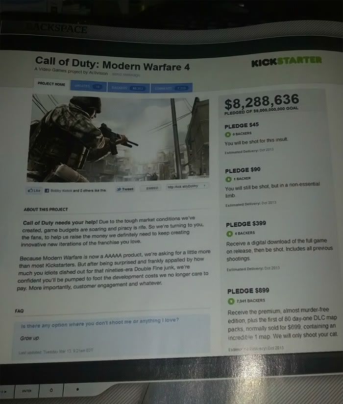 though. Good thing they don't mention backers in the credits. I don't want my name associated with that disappointing POS more than it already is.