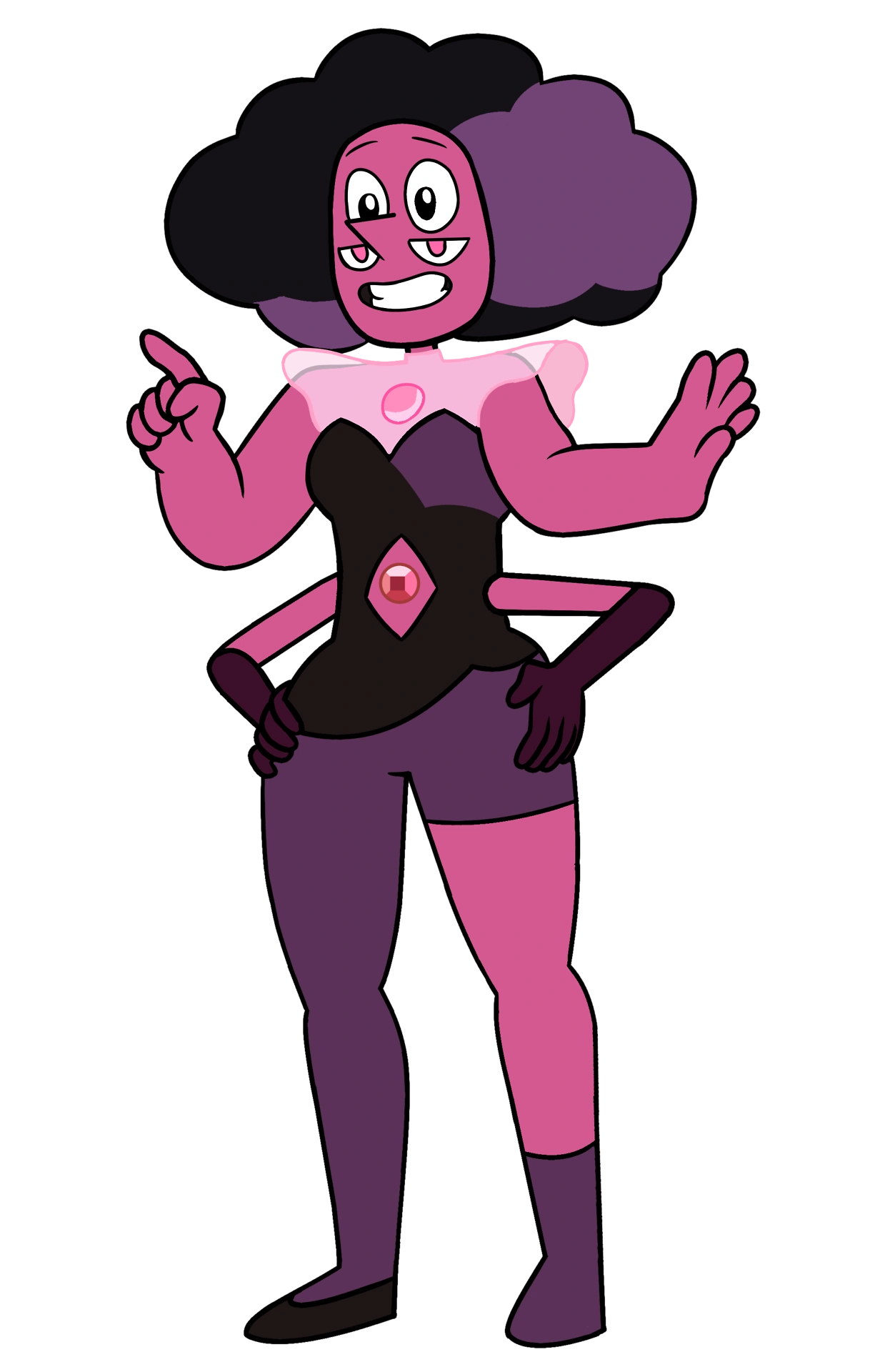 Actually, Rhodonite is almost entirely pink, and the reddish tint and black outfit can be chalked up to the Ruby. If the Pearl placement is just a coincidence, maybe half of Rhodonite is Pink Diamond's Pearl.