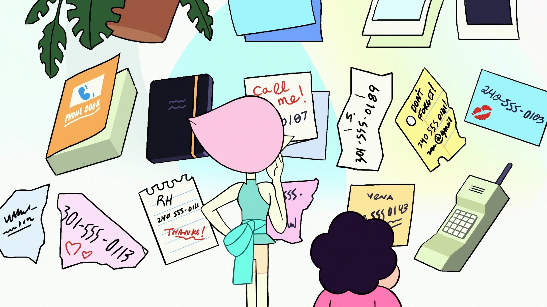 - "Steven, I didn't send that." Pearl only catches on when she gets the Rose of Sharon text. It's easy to overlook with other things, but this episode basically implies the Pearls inside Pearl's pearl are literally-existent beings capable of acting and learning independently. (I sort of feel like making a character entry on the "Other" page about them, since they're distinct "characters" about as much as Rose's Room or Holo-Pearl are.)
