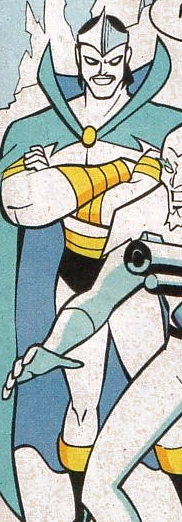 He was joined by A man in a blue bodysuit with light blue icy accents,