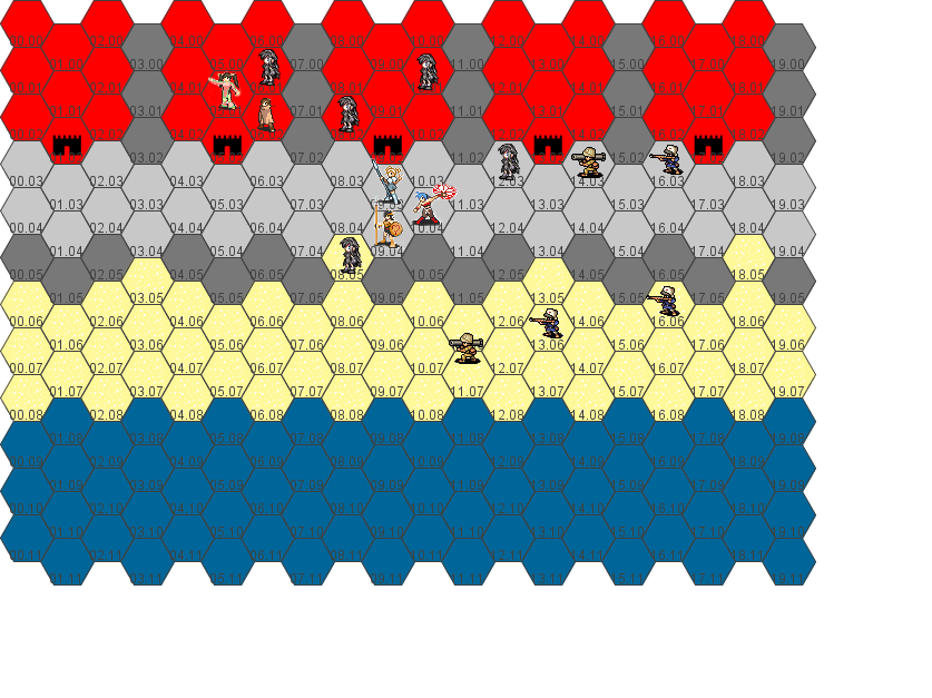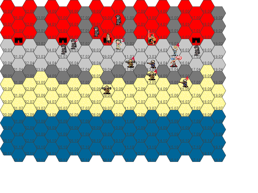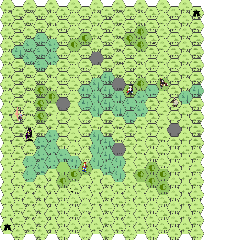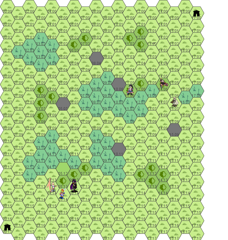 Move to 13.04, healing Hannah along the way. Attack enemy at 13.05.