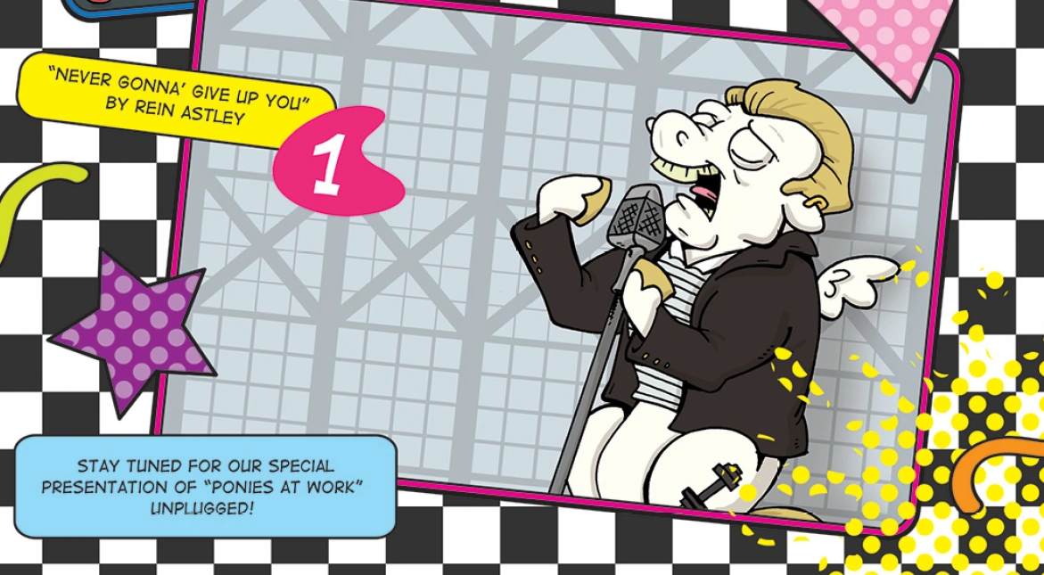 ALL THAT YOU ARE IS A FACE IN A MIRROR,IL CLOSE MY EYES AND YOU'LL DISSAPEAR.Oh, hi Lyra. That's how everypony was wearing their mane back then.