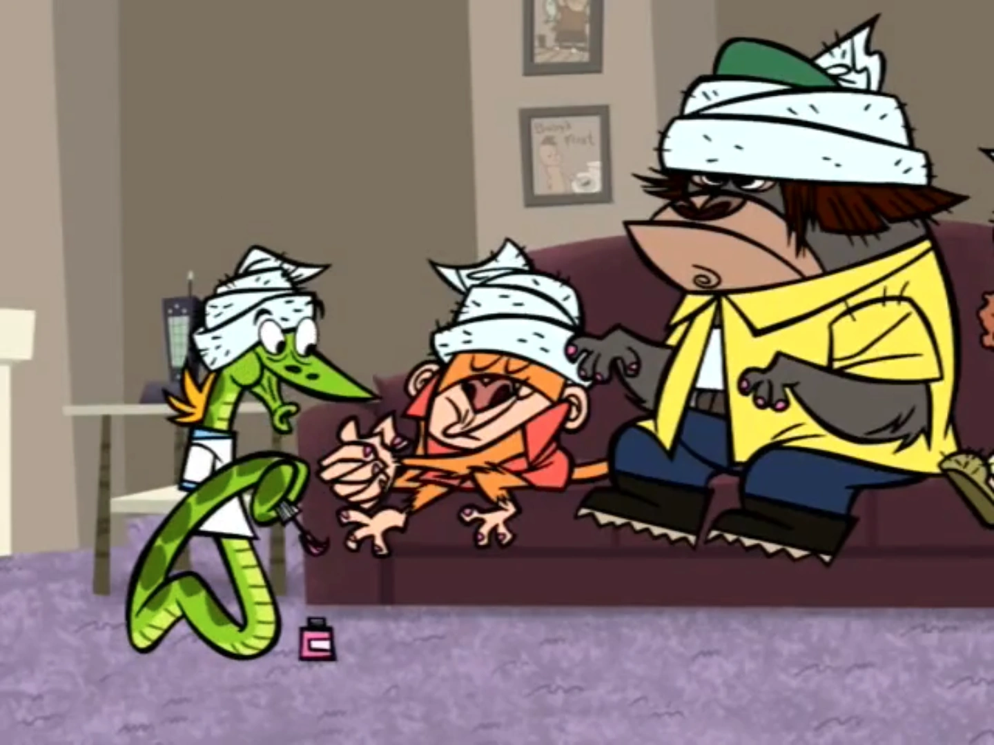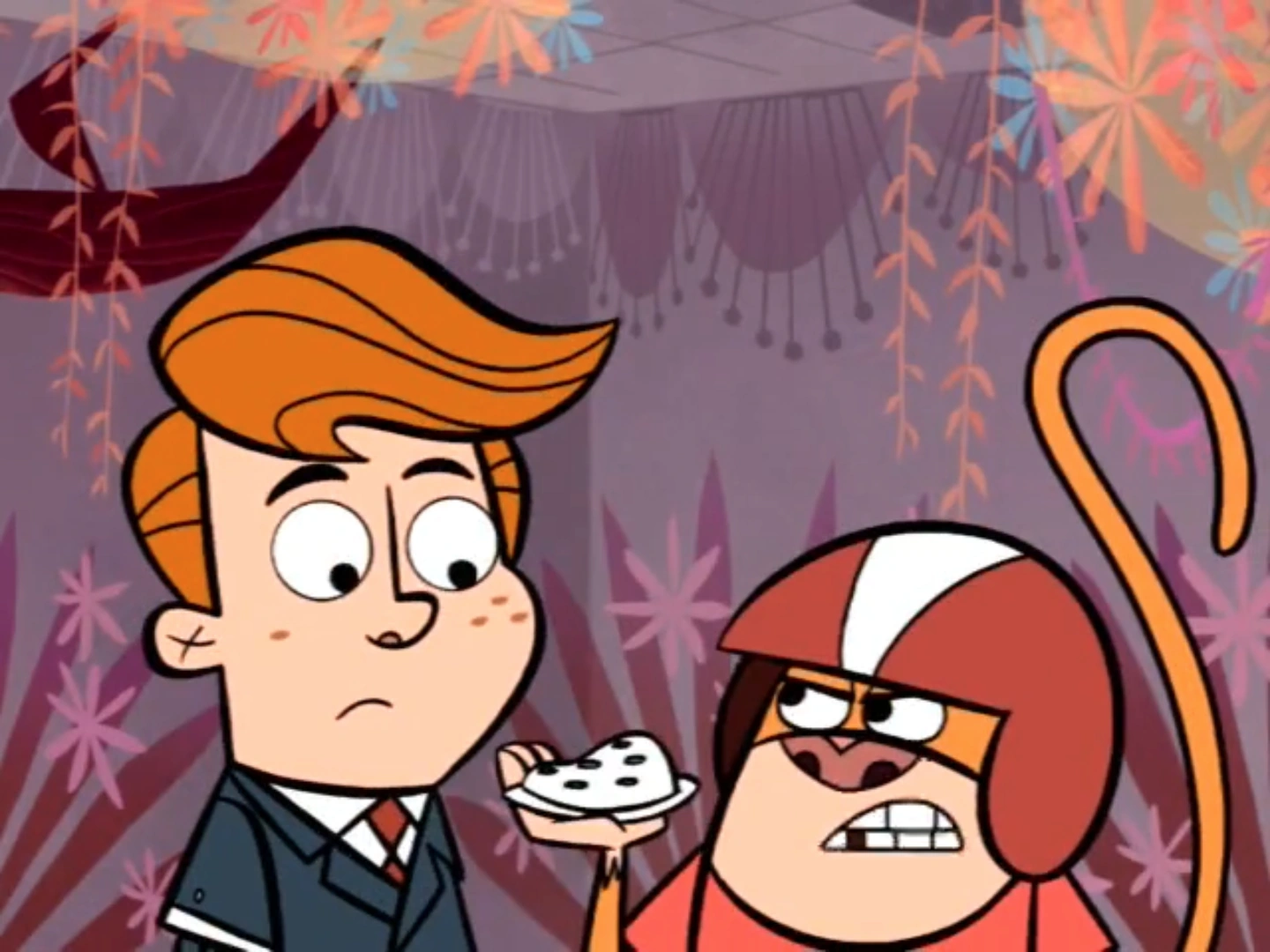 - In "The Notorious Windsor Gorilla", one scene parodies Inside the Actors Studio, with Principal Pixiefrog as James Lipton. Naturally, he asks Windsor the "10 Questions" and of course, the one we see is "What is your favorite naughty word?" Windsor responded by pounding his chest and making loud and primal ape noises, which apparently translates to something offensive in gorilla language. This is about as radar-worthy of that one Spongebob episode. Which is to say, it's not at all, since again, Spongebob got away with it to a worse extent.