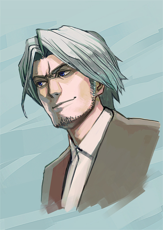 - Note: His clothing generally has primarily white coloration, usually with some black. His hair also went grey pretty early on, a fact that he gets irritated about easily.