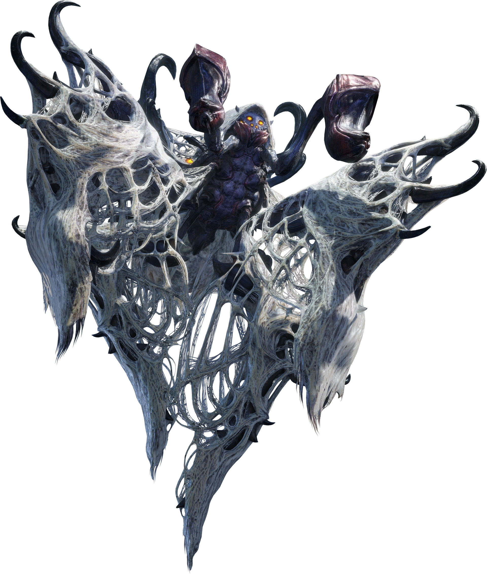 ◊ absolutely covered in webbing, with a surprisingly long neck like that of an assassin spider. It tilts its head quizzically at the demons.