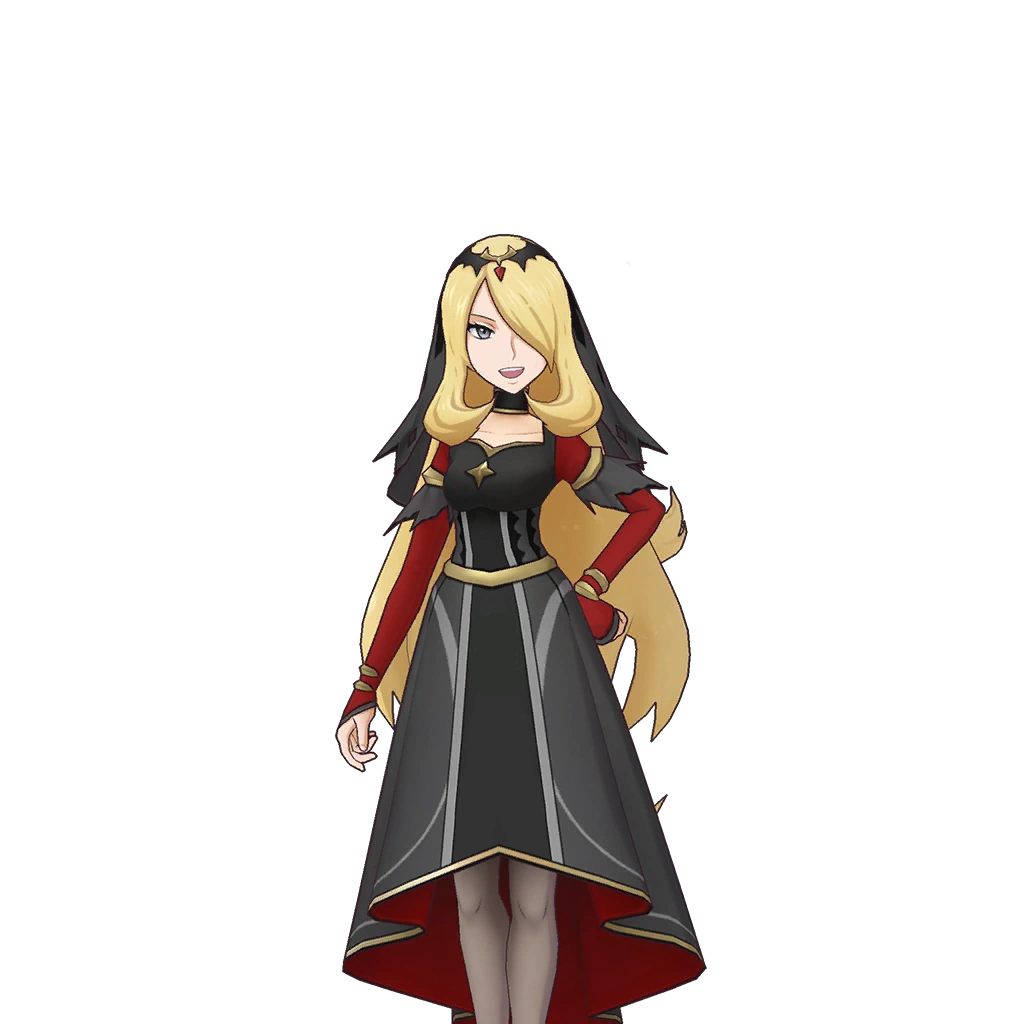 ◊ with the addition of Giratina's Altered Forme wings on her back, tucked in to resemble a cape. Her eyes have changed from her usual purple Hex Maniac swirls to completely pupil-less red.