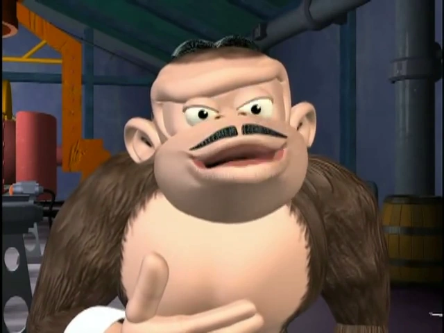 "Uh... I, eh... quickly, give me more of the serum!", Bluster Kong calls out to the TV-Headed Man, who now looks in his direction, smiles and shrugs.