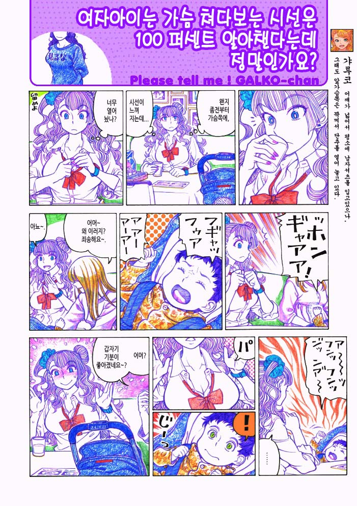Not much context is needed, but basically Galko got so hot and bothered (while eating especially hot curry) so she opened her shirt a bit, which made a crying baby quiet down.