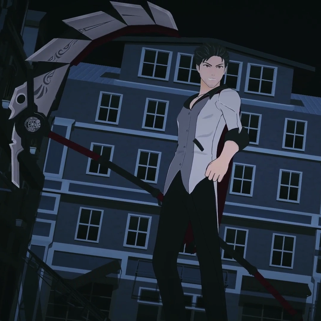 forced it's way out of back of the blade's blunt edge, and as the transformation ended, Qrow rested the scythe upon his shoulder.