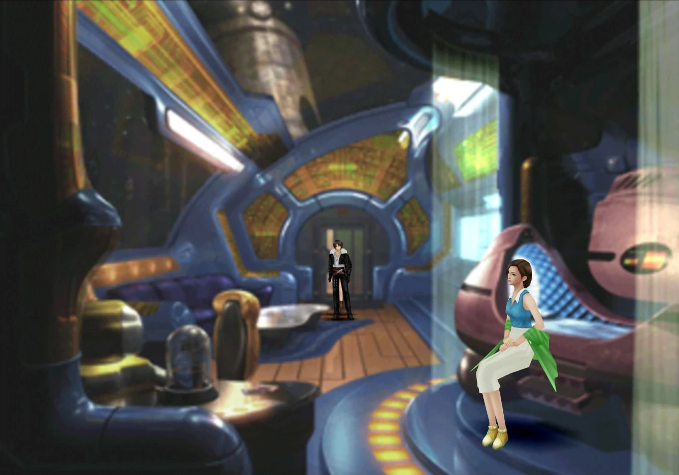 (@Asagi) Quistis: You do, but not for long. "Ragnarok" is one of the fastest ships of the planet, and they're almost ready for leftoff by now. Meanwhile you get a place to sleep, train, eat, drink, socialize and play Triple Triad since neither me nor the president could've resisted the temptation to equip the new station with game boards after the previous one collapsed. By the way, here we are.