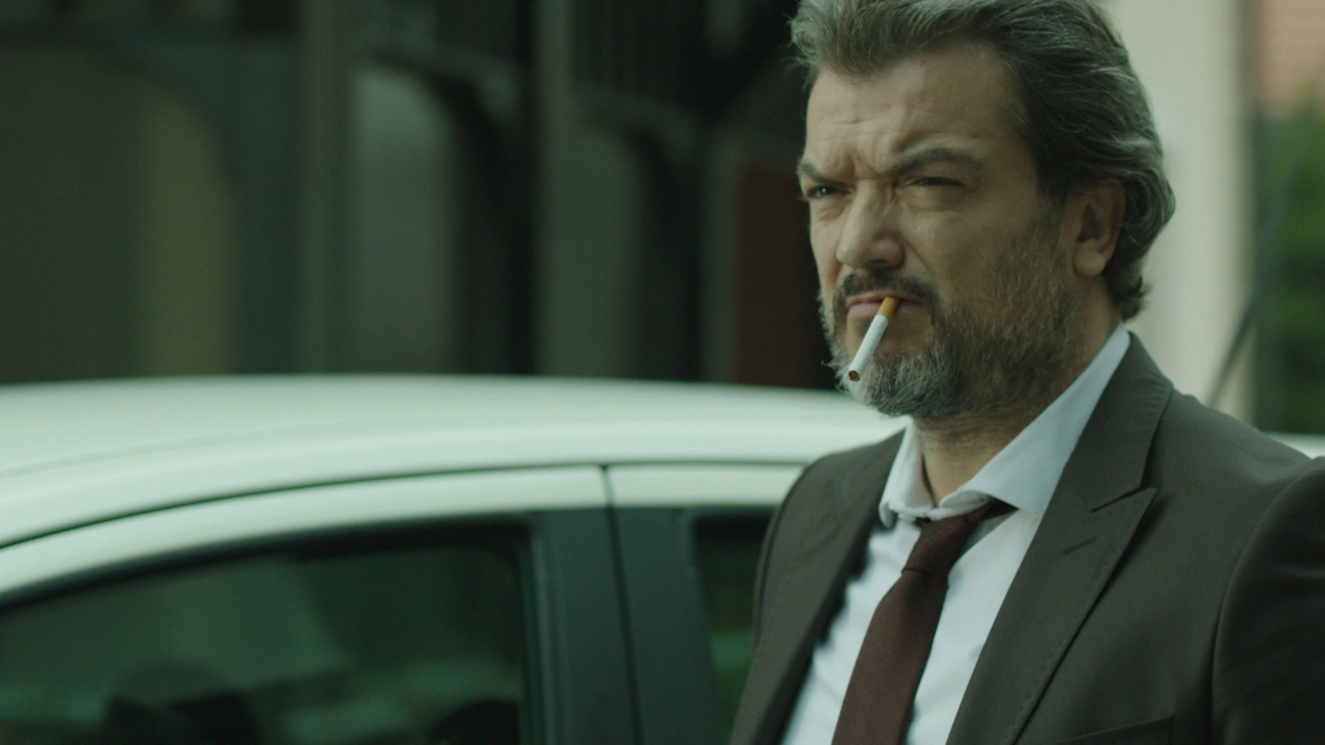 . Cigarette and all. His hair is frazzled, and he looks like he has bags under his eyes, but he strides towards the group with purpose-