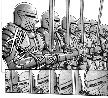 —Those of you who may be listening can hear the beat of hooves against the earth. A group of mounted soldiers—and what appears to be at least a few proper knights—emerge from the forest into the clearing. Most of the mounted soldiers have helmets and plate armor