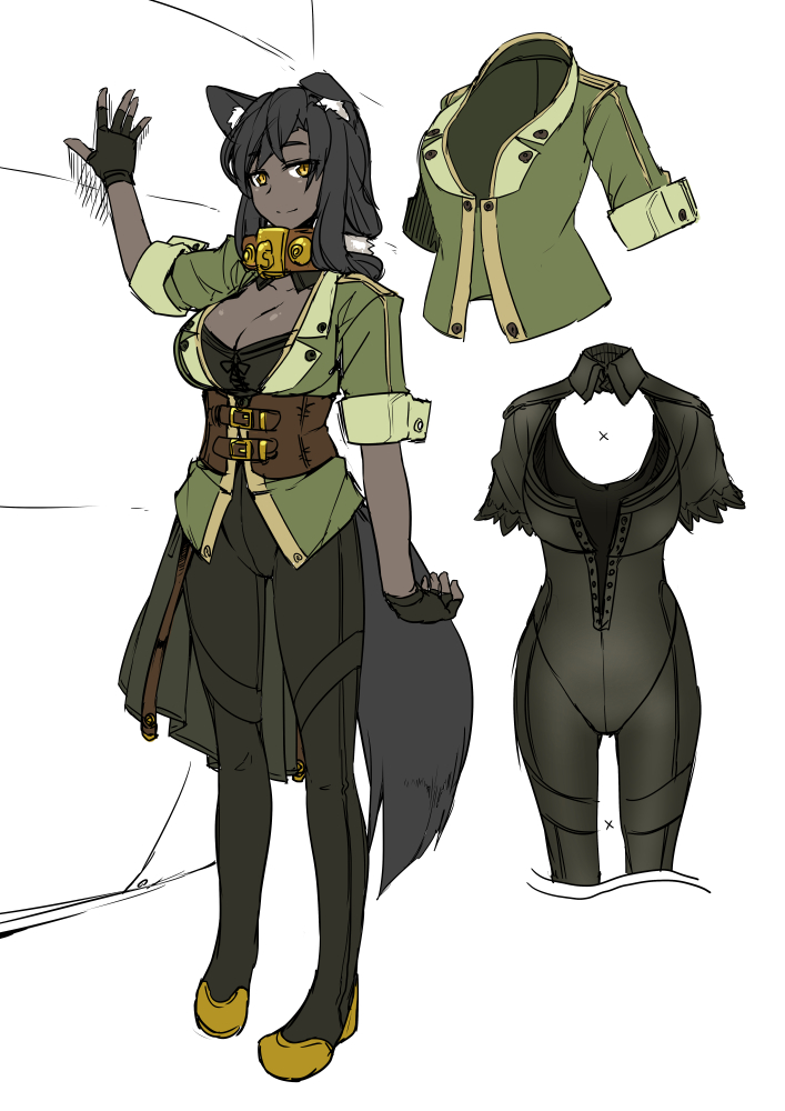 • Appearance: An attractive androgynous fellow that stands at about 5 foot even. He has dark violet eyes, with matching hair cut in a bob. His attire is rather unique, consisting of a tight black sleeveless shirt, leather pants, and thigh boots, and over those, he generally wears a short side slit skirt and shawl. Most of note is the large witch’s hat he wears atop his head. Due to his particular attachment to this hat and the rumors that naturally swirl around him, quite a few rumors have sprung up about the hat. Some say he has a bottle of particularly nice alcohol hidden in there, or that a tiny devil is hidden inside. And perhaps the most absurd of all is that he has cat ears hidden under there. But that couldn’t possibly be the case?