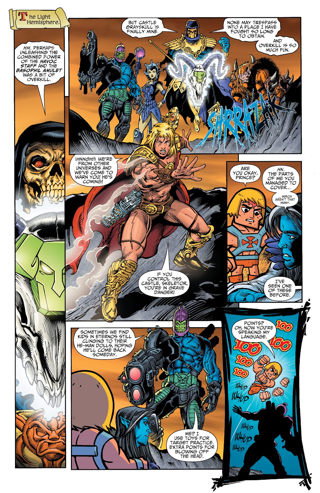 two versions of He-Man, who arrived and his good version from another universe, Skeletor brought them to now his Castle Greyskull. Throwing