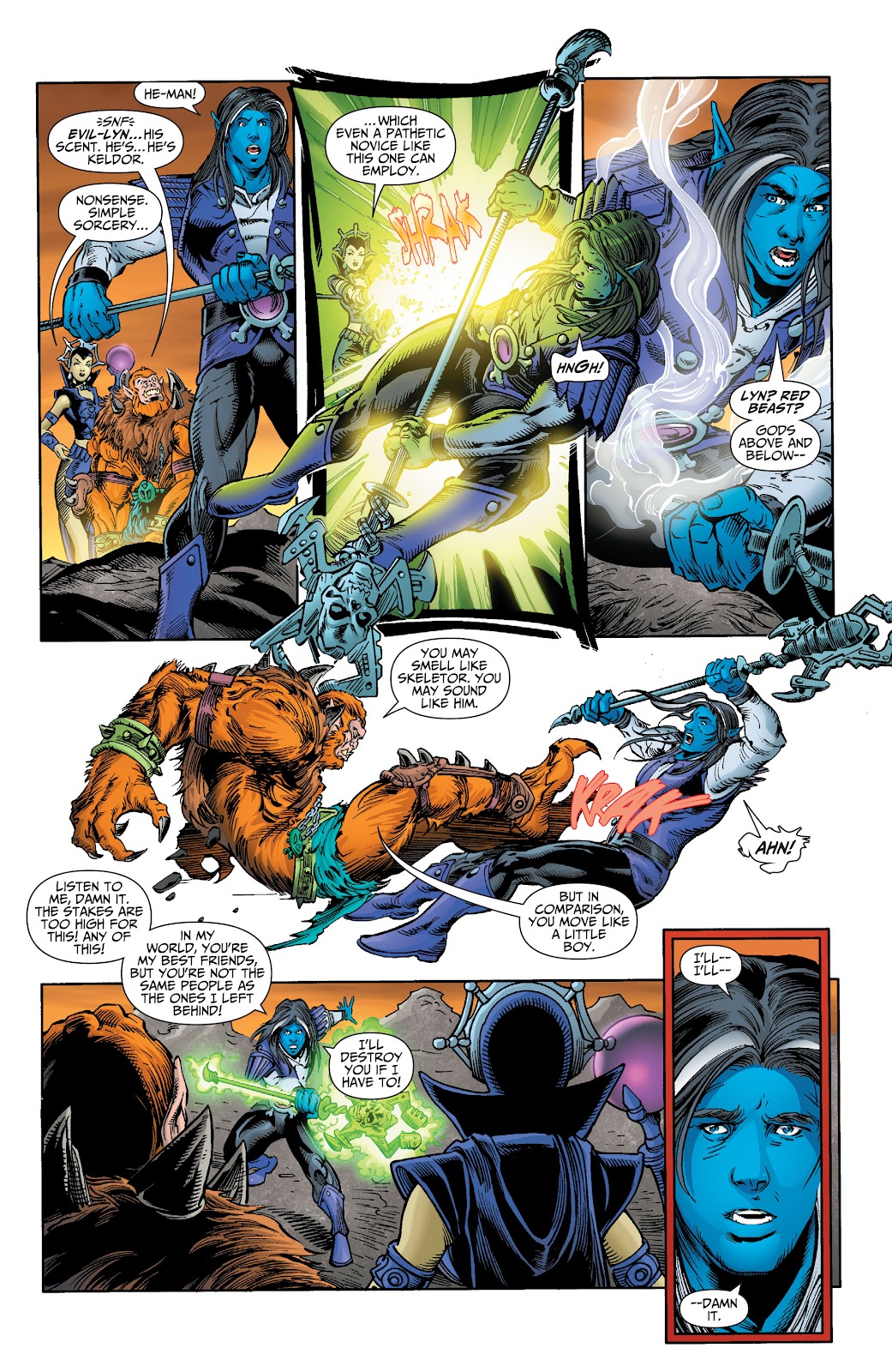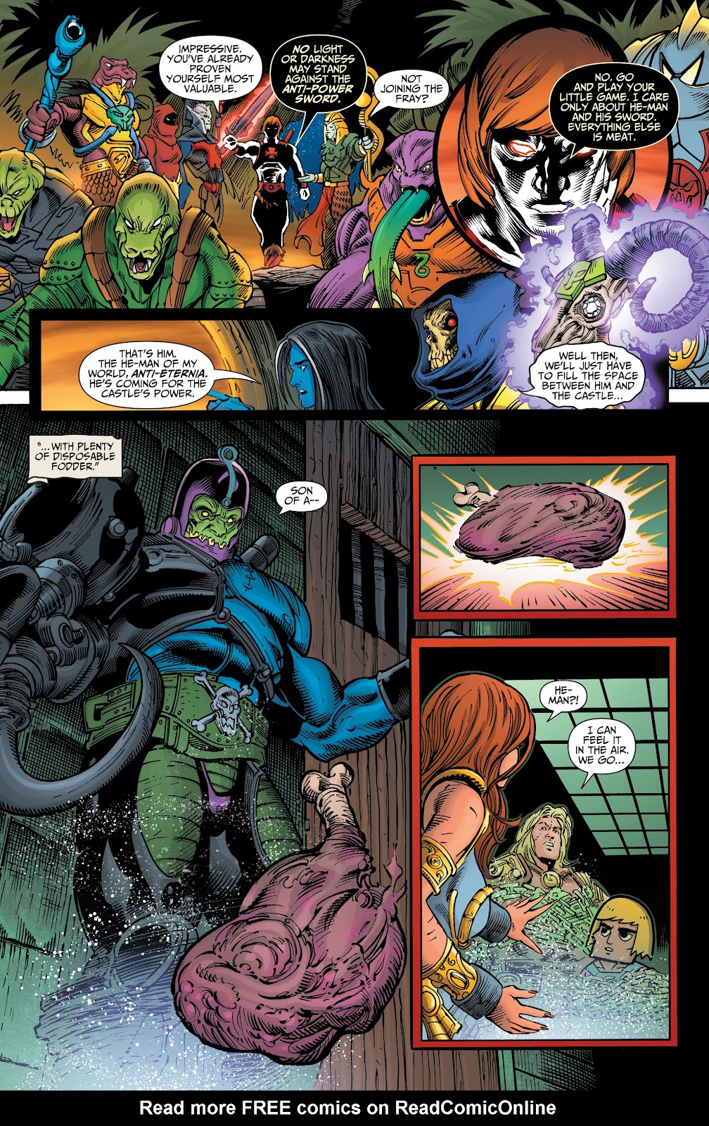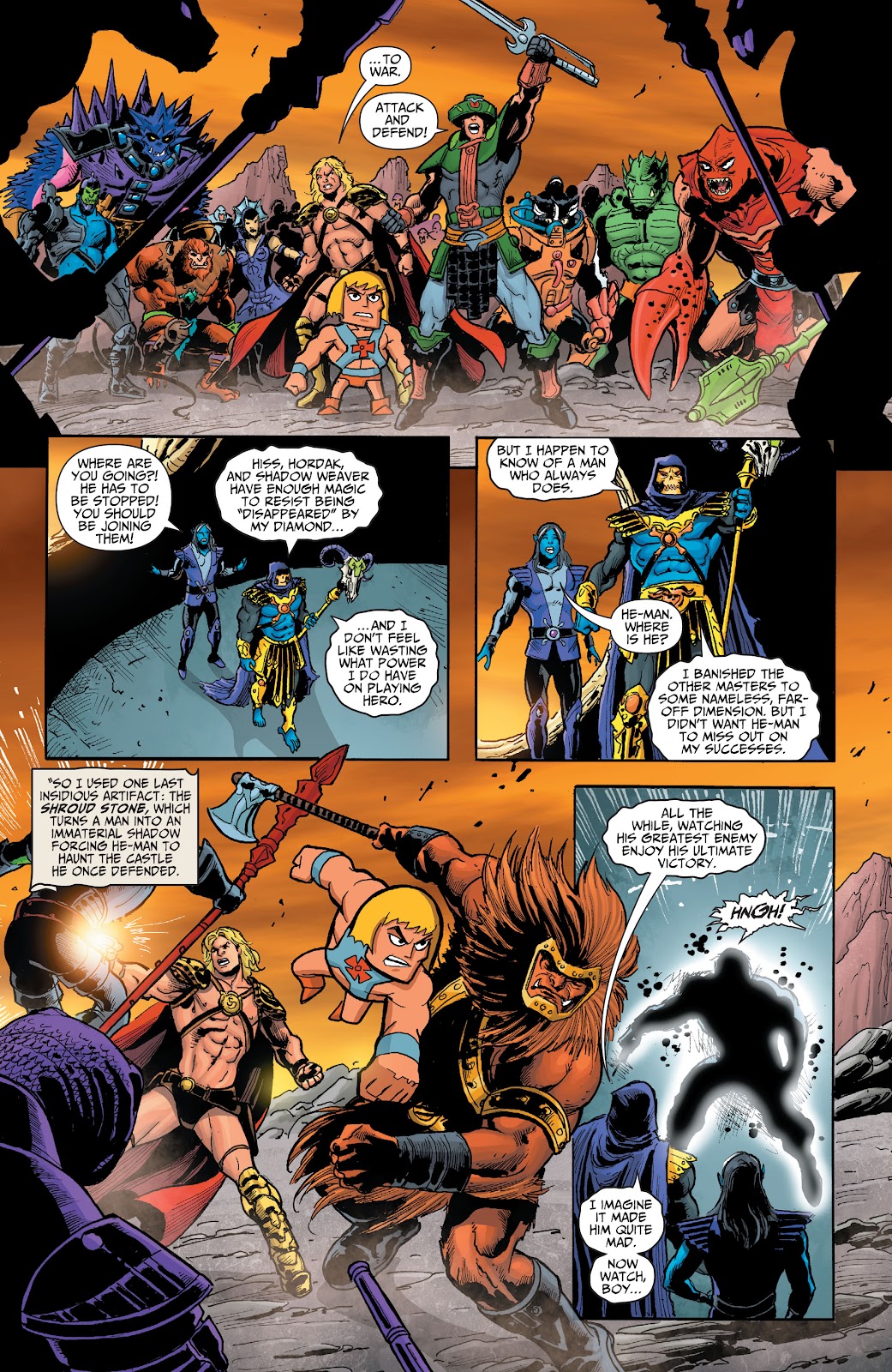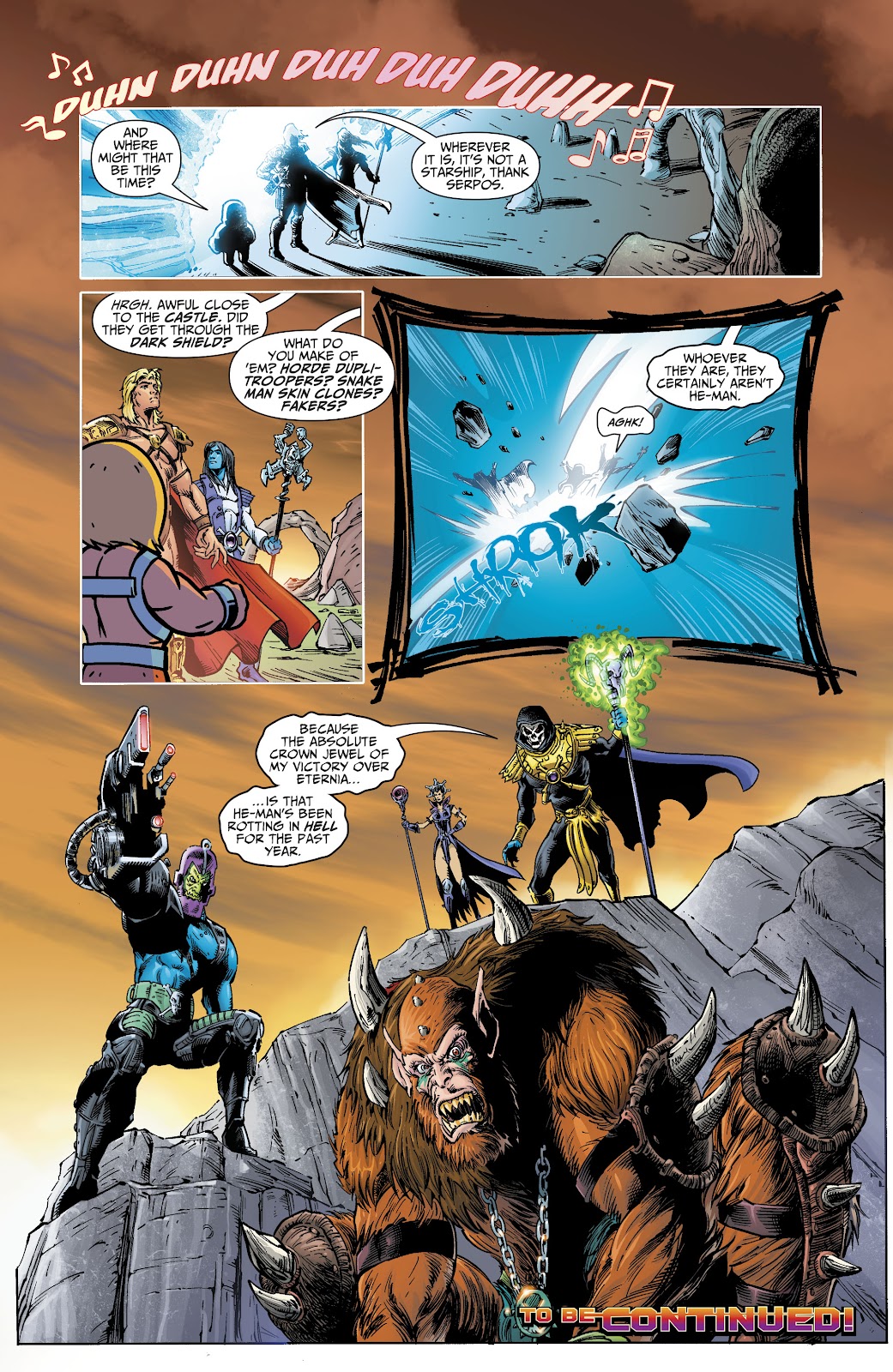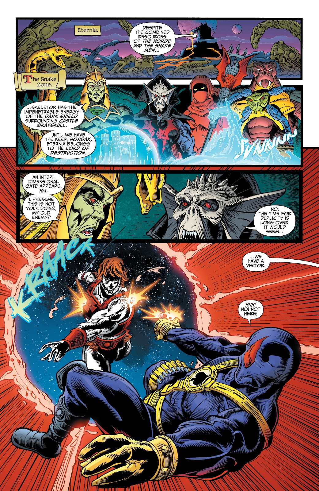 Keldor's attempts at convincing him that the person that he was is still inside him, Skeletor sees that Snake Men and the Horde broke through his shiled, to which he responds
