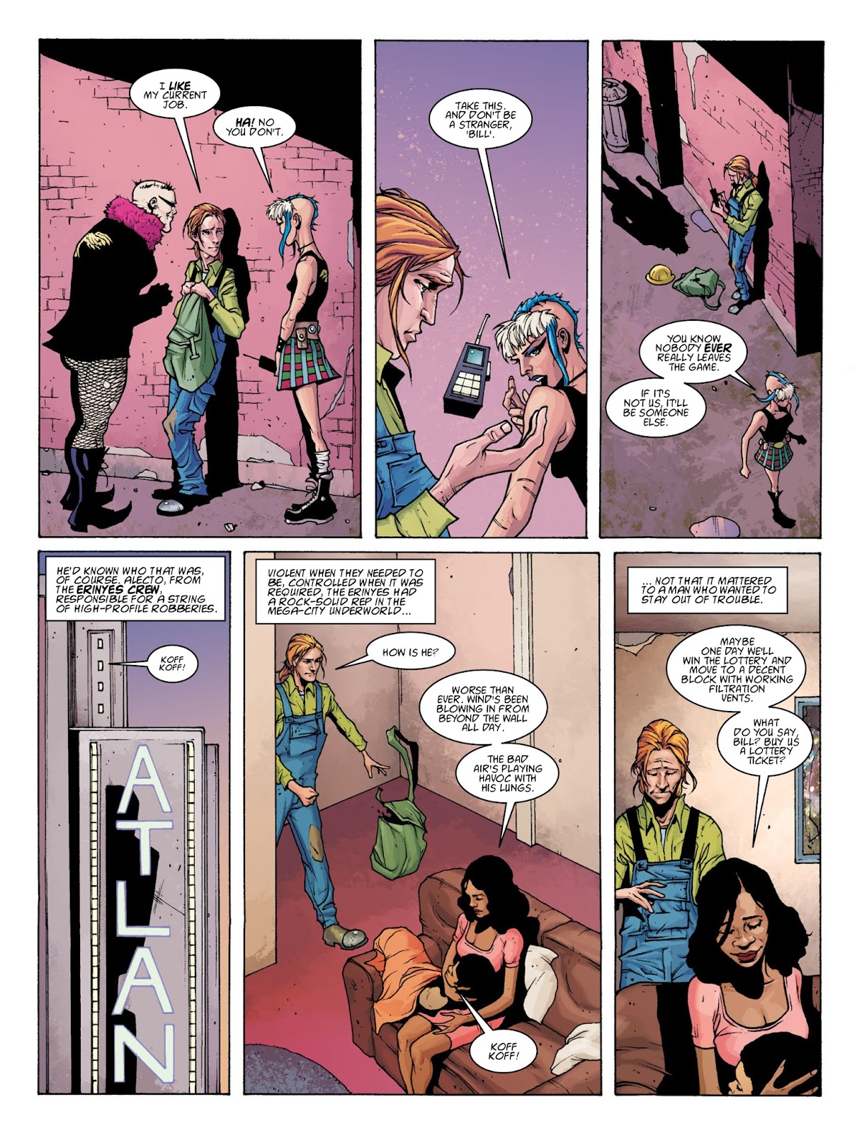 Okay, while he comes off as a good dude for Dredd's world, he still was willing to allow Erinyes Crew to rob the Penthouse and didn't care and give them the access to murder the people, who guarded the place. Also, he still ended up as an outlaw, who intended to live a life of crime to support his family with his "unclean" money. That said, he loves his family and detest murder, while immideatly deciding to abandon Erinyes Crew's scheme, when he found out that they wanted to kidnap and harm a child.