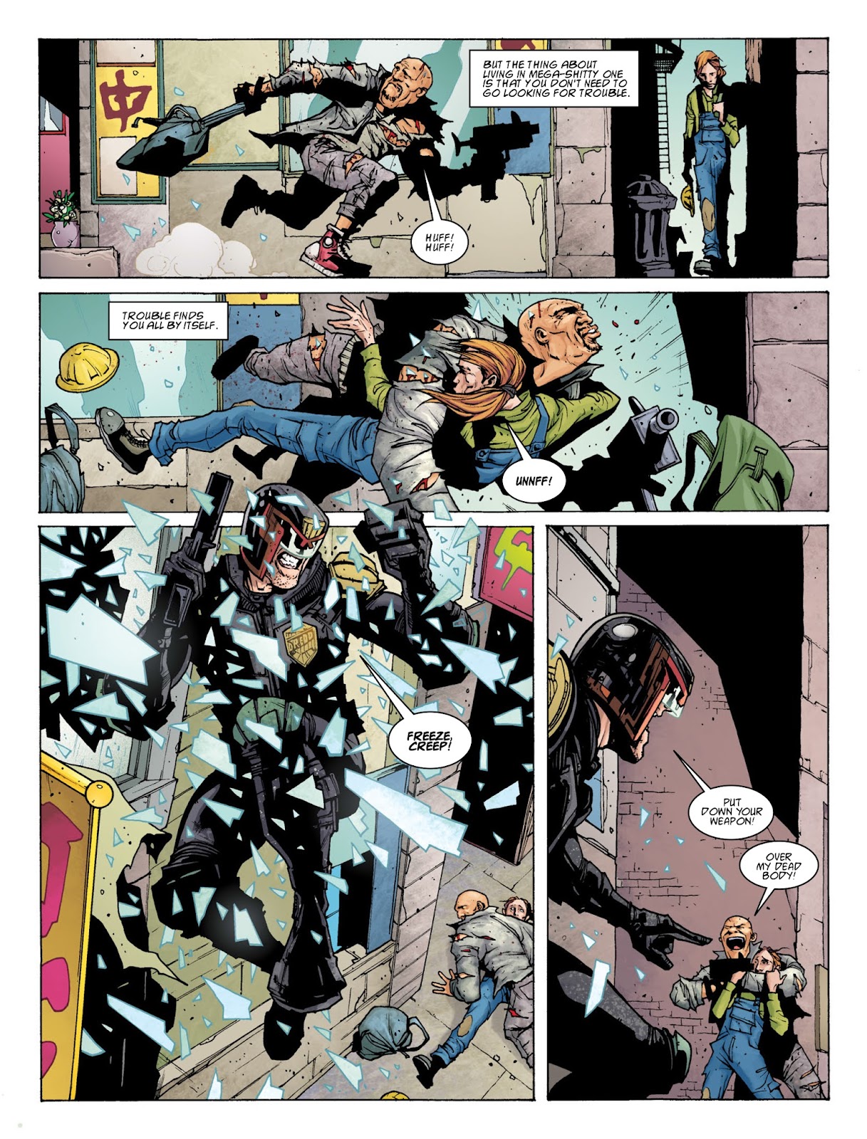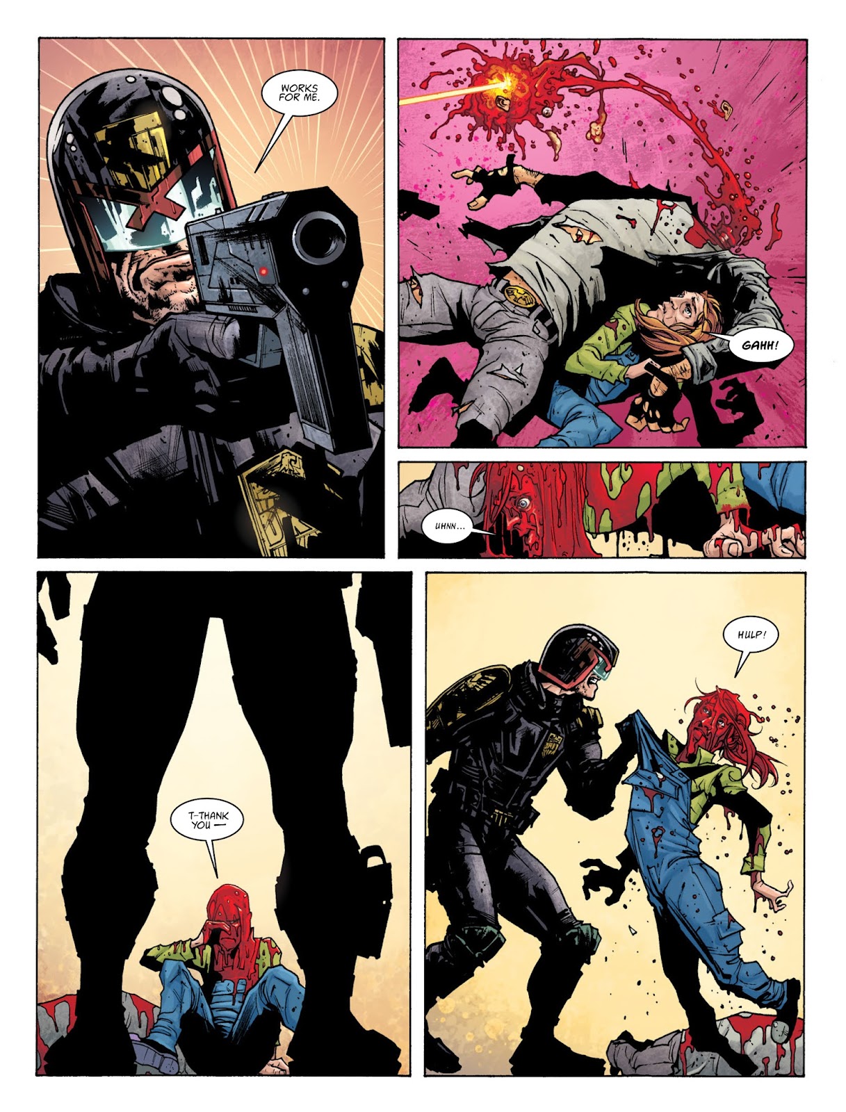 down a criminal, who took him hostage, but Dredd kills