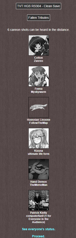 - The fallen: Cotton; Feena; Hoennian Linoone; Kizuna; Hand Demon; Patrick Kielty