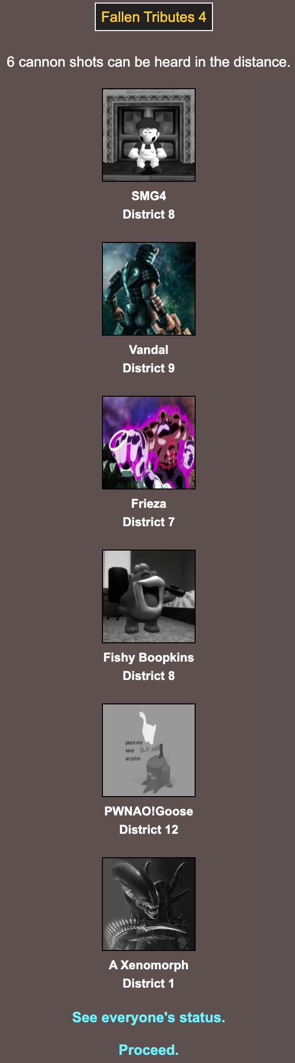 The League of HeroesAnd both of my tributes are dead now. Yay...